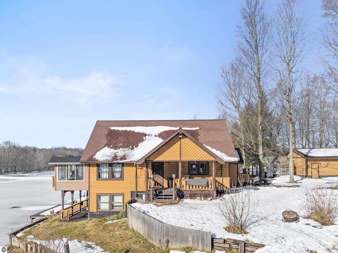 Natural beauty surrounds this 100+/- acre private estate in Northern Lower Michigan. A long winding drive leads to a custom-built, waterfront cottage-style home perfectly set in its peaceful country setting. Move-in ready, this property is ideal as a private retreat, lodge, or homestead. Thoughtfully designed for deer management and migratory waterfowl, the land includes approximately 60 acres in planned agricultural production. The cedar log-sided home is filled with natural light and offers stunning views from every level. Plenty of room for horses, cattle, or other livestock, plus a greenhouse and large root cellar to support your harvest. Two 24???x30??? insulated garages with heat, power, and water provide ample space for equipment and toys. A waterside cabin with power awaits your finishing touches. Woods, fields, and rolling terrain offer exceptional hunting and recreation, along with a stocked private lake for fishing and paddling???your up-north escape awaits.