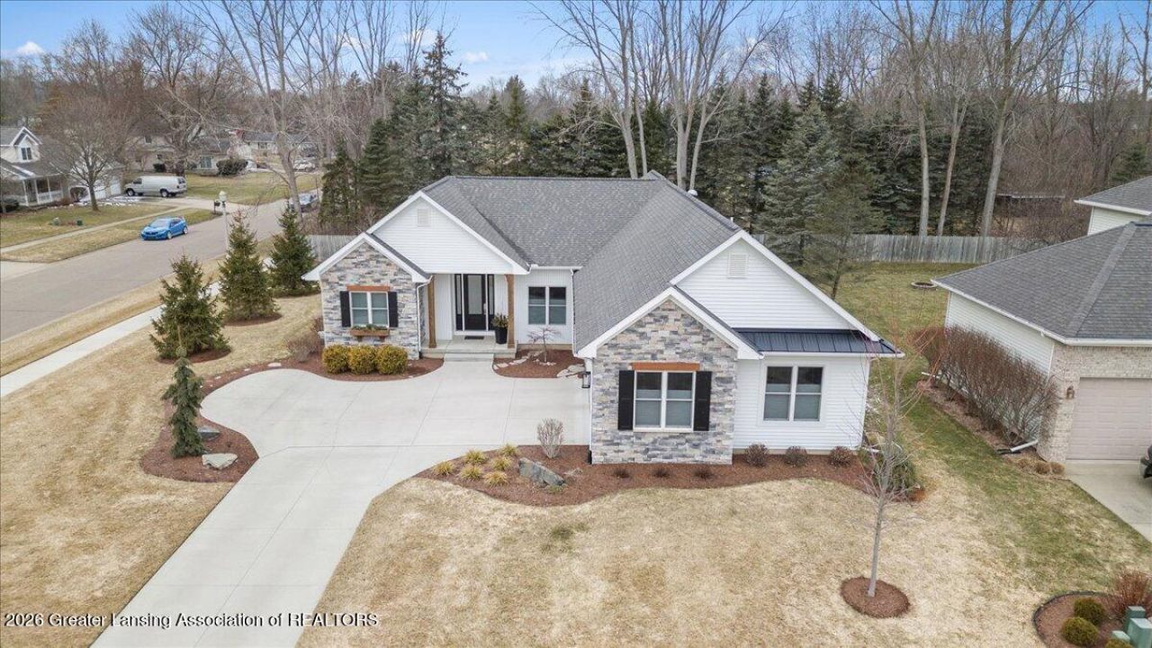 Welcome to 822 Laurelwood in Grand Ledge School district, an immaculate, one-of-a-kind custom home built in 2020 by LT Schafer, showcasing high-end finishes and exceptional craftsmanship throughout. Designed with an open floor plan and soaring 9-foot ceilings, vaulting to 10 feet in the kitchen, dining, and living areas, this home feels both grand and inviting. Solar tubes bring in beautiful natural light, while a gas fireplace anchors the main living space. The chefs kitchen is the heart of the home, complete with a pantry and elevated finishes, flowing seamlessly into the dining and living areas. The main level also features a dedicated office that could easily be converted into a third main-floor bedroom, along with convenient first-floor laundry. he expansive primary suite is truly impressive, offering double closets, dual vanities, his-and-her sinks, and a spacious spa-like bath. Luxury vinyl plank flooring runs throughout the home, complemented by Andersen windows and thoughtfully incorporated high-value antique elements, each with documentation, receipts, and provenance. The finished lower level adds approximately 1,000 square feet of living space, including a large family room, one bedroom, and a full bathroom, plus an additional 1,000 square feet ready to be finished and already plumbed for a kitchenette, ideal for extended living or entertaining. Additional highlights include an oversized, insulated 2-car garage with a separate storage room, radon mitigation system, irrigation system, and a private backyard with an incredible covered porch surrounded by mature evergreen trees. A rare blend of quality, design, and privacy, this home truly stands apart.