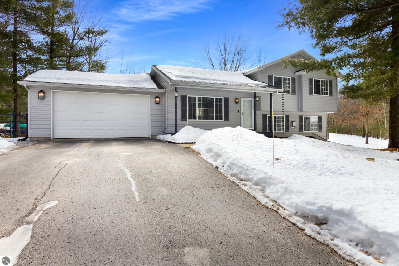 Welcome to this TASTEfully presented 4 BR/2 Bath home nestled on a NATURALLY beautiful 1.2 acre parcel! Enjoy a spacious yard perfect for outdoor activities; mature trees + lovely irrigated lawn; entertain at the rear deck, newer lrg storage barn + plenty of space for kayaks, campers, gardens & an inviting front porch. This multi-level home offers open living spaces including a walkout LL, fireplace, family/office room. Appreciate the quiet ST shared w/only 2 other neighboring homes. Take an evening walk in the neighborhood to scenic Cedar Hedge Lake:All located near Interlochen village, SW of Traverse City & a hub to great amenities within a quick drive. Interlochen is host to Interlochen Center for the Arts, cradled in between all sports Duck & Green Lakes. Say YES to this beautiful area & move-in ready property!